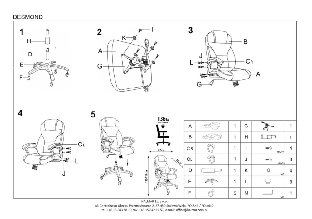 Na bytelnosti křeslu přidává zesílený kříž z tvrzeného plastu, který je v chromové barvě, aby ladil s opěrkami rukou. Na eleganci křeslu přidává dekorativní prošití. Židle je výškově nastavitelná, s houpacím mechanismem a předním šroubem na úpravu tuhosti pohupu. Kolečka jsou univerzální a vhodná na všechny povrchy.
