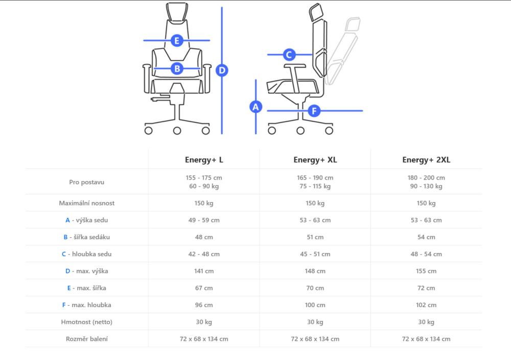- Zdravotní židle THERAPIA ENERGY+ Black Color XL (165 - 190 cm) – na míru, více barev